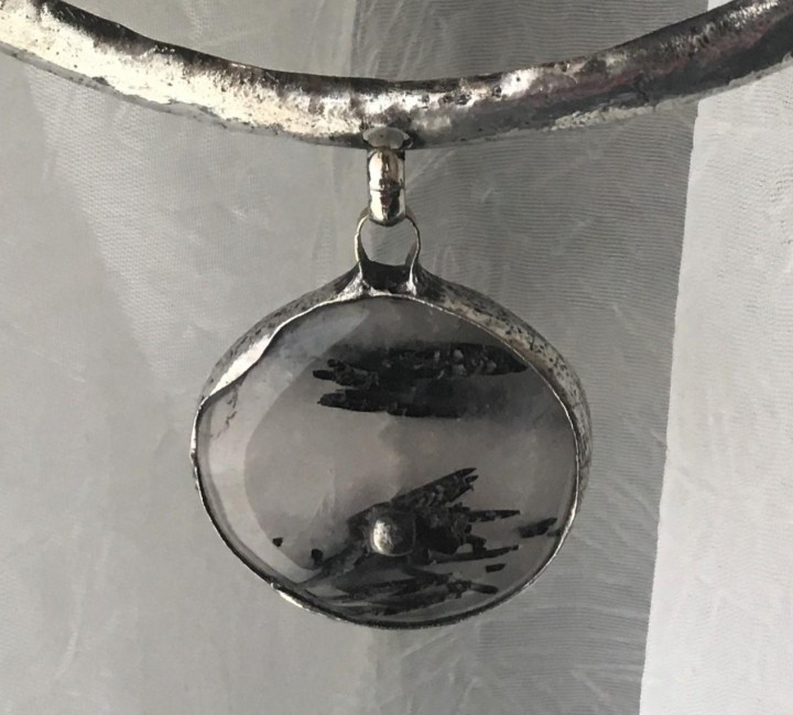...cesta večernou krajinou môže byť viac než prechádzkou. Múza v podobe nočného jazera pri svite mesiaca. Ručne dorobený kryštáľ s turmalínom. Tento kryštál je kameň duchovného poznania. Pôsobí ako katalyzátor, ktorý v nás urýchľuje výmenu energií. Negatívnu energiu odoberá a pozitívnou energiou nás nabíja. Turmalín je najsilnejší ochranný kameň. Chráni nás pred vlyvmi nášho okolia, ako sú ľudská závisť a zloba, ktoré nás môžu oslabiť či uškodiť.